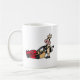 Taza De Café Vaca divertida que empuja el dibujo animado rojo
