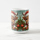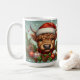 Taza De Café Vaca en Santa Hat rodeada de adornos navideños