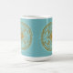 Bonito diseño en un fresco turquesa con motivos indios en un cálido color dorado.