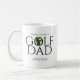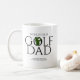 La moderna y fresca taza de café con un prominente encabezado "WORLD'S BEST GOLF DAD" en la tipografía minimalista y una silueta dorada incrustada en el texto. Personalizable áreas de texto bajo encabezados. Idea de regalo perfecta para tu golfista favorito. Ideal para Navidades, Día del Padre, cumpleaños o cualquier día.