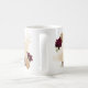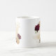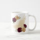 Hermosa taza de café con flores granate y beige dorado con hojas verdes .
