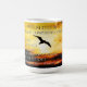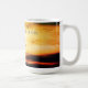 Hermosa cita inspiradora tazón de café representa una ave marina volando sobre una asombrosa puesta de sol del océano y muestra Salmo 27:13-14, "Sigo confiada en esto: Veré la bondad del Señor en la tierra de los vivos. Espera por el Señor; sé fuerte y ten corazón..."