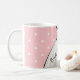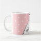 Un diseño elegante para una despedida de soltera, con un fondo romántico de color rosa y lunares blancos. El vestido de novia y la novia en este diseño hacen que no puedas esperar para ver la boda y a los novios.