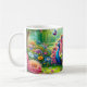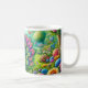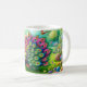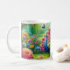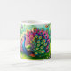 Taza De Café Vibrante pavo real en un fantástico cuadro de jard