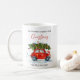 Acogedor con este vintage tazón de Navidad con una escena nevada con un auto y un árbol rojos, junto con el mensaje festivo "Ten a ti mismo un dulce Navidad". Personalízalo con un nombre o un apellido para un cálido regalo de vacaciones o una manera perfecta de disfrutar de su cacao, café o té al estilo de temporada.