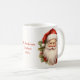 Un Papá Noel tan feliz necesita estar en una taza de café, por supuesto. Colocamos la imagen a ambos lados de la taza. Además, hay un área de texto en el medio, con inscripciones de apellido, palabra Navidad y el año. Puede borrar todo el texto, si no prefiere ninguno. Pero si lo mantiene, asegúrese de cambiar el nombre y la fecha según corresponda a su propia persona.