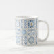 A seamless ornamental tile pattern featuring intricate blue floral motifs, geometric frames, and decorative scrollwork arranged in a classic European-inspired layout on a soft neutral background.