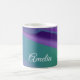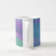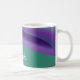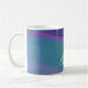 Esta taza de café presenta un diseño minimalista sorprendente con un cautivador patrón de olas en tonos violeta y turquesa. Es una elección ideal para cualquier ocasión.