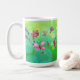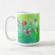 El nombre del personalizable en verano vibes verde café Mug. Mugre feliz de verano con flores y mariposas acuarelas sobre un vibrante fondo verde con anillos de bokeh bailando como una pradera de verano. El nombre está en una fuente de escritura femenina y magenta. Un regalo personal y reflexivo a una persona especial. Esta taza te dará buenas vibraciones y una sonrisa en tu cara. Es verde y colorido. Casi como si la brisa de verano te estuviera tocando la cara mientras la luz del sol, las mariposas y los anillos de Bokeh se están dando vueltas. Con tu nombre en él, nadie se llevará tu taza en la oficina o en casa. Disponible en diferentes modelos y tamaños.