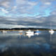 Por la noche, las vistas al puerto de Aberdyfi salen después de un día de lluvia.