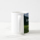Una taza inspiradora que ofrece una foto hermosa, vibrante de un perro que limita a través de un campo, con una expresión de la alegría y libertad pura, y la frase: "Vivo como alguien dejó la puerta abierta."