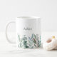 Enjoy your favorite coffee or tea with a touch of calm botanical beauty. This personalized eucalyptus coffee mug features a soft watercolor greenery design wrapping along the base, paired with your custom name in an elegant serif font.