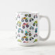 A fun and playful seamless pattern featuring colorful monster trucks with bold tires, dripping paint details, and cute cartoon style. Perfect for kids