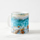 Taza De Café Waves on a rocky beach at sunset. Aerial viewbeach