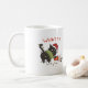 We've all been there! This hilariously relatable mug captures the true "joy" of the holiday season when things go a little... wrong. Featuring a grumpy black cat wearing a festive sweater and Santa hat, tangled in Christmas lights, and having just knocked over a delicious-looking holiday coffee drink. The bold "WHAT??" text perfectly sums up the cat's (or your!) reaction.