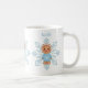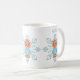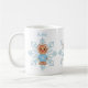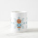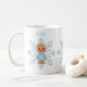 Whimsical Blue Snowflake and Winter Gingerbread Person taza de café. Mug. Disfruta de tu cacao caliente en esta adorable taza blanca con copo de nieve azul y una linda persona de pan de jengibre. Hazlo especial añadiendo tu nombre o dándolo como regalo.