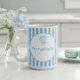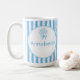 Taza De Café Whimsical Blue White Stripe Preppy Monogram