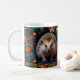 Esta taza de café cuenta con un adorable erizo enclavado en el centro de un frondoso y vibrante arreglo floral. El diseño es muy complejo y combina tonos verde azulados, naranjas y dorados, con flores delicadas y un revoltijo de follaje armonioso. Perfecto para los amantes de la naturaleza y para los amantes de las encantadoras criaturas de bosques, esta taza de café le da un toque caprichoso y elegante a cualquier regalo.