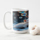 Una cabra gentil, de cuerno largo, comparte un momento tierno con un gatito blanco diminuto en un bosque nevado, rodeado de burbujas que se sacuden. Una hermosa representación de una inesperada amistad y magia de invierno.