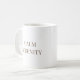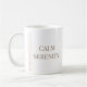 White Braid Serenity features the phrase CALM SERENITY in centered serif lettering, paired with vertical braid-inspired linework near the handle. The clean white base and minimal detailing make it a natural fit for desks, open shelving, or slow morning routines in neutral-focused spaces.