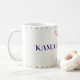 Mug de White Kamala Harris. Acentos rojos y azules.