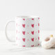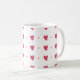 11oz white mug featuring a playful pattern of a few wavy red hearts with tiny scattered dots. Perfect for cozy coffee moments or as a cute gift for loved ones.