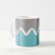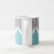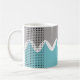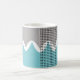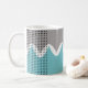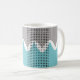 Esta taza tiene un diseño geométrico hecho de dos rectángulos de vieiras y un rectángulo formado por filas de puntos negros. Si te gusta el diseño pero prefieres colores diferentes, envíame un mensaje.