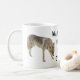 Un dibujo a lápiz de color de un coyote salvaje adorna esta taza de "¡Soy un animal salvaje sin mi café!". Personalizar cambiando el texto para que se adapte a ti mismo!
