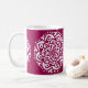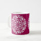 Esta mandala blanca se asienta sobre un fondo rosado oscuro. El color es muy rico y refinado. Parte de la colección Kylgh Mandala.