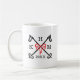 This personalized novelty mug is suitable for a couple, family members, or a specific event. It features initials and a date, with the central design depicting two crossed ski poles tied with a red bow. Placeholder initials are positioned around the sticks, and the text “20XX” is placed below the bow, serving as a placeholder for a specific year. All design elements, including fonts and colors, are editable.
