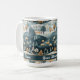 Este tazón de café personalizado es el regalo perfecto para alguien a quien le gusta la temporada invernal. Con obras de arte de estilo escandinavo, el hermoso parque invernal de bosques representa árboles helados, nieve y lindos animales en tonos marrones verde azulados y dorados. El texto editable le permite personalizar con los nombres o cualquier mensaje que desee.
