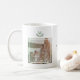 Celebra la unión con esta taza personalizada, con tu foto favorita mostrada en un marco clásico con un degradado verde suave. Una corona festiva con un monograma familiar añade un toque estacional sobre la imagen, mientras que la parte inferior incluye un texto "familiar" editable que se puede personalizar o quitar para cualquier ocasión. Un regalo perfecto para los Navidades, un regalo para las reuniones familiares o vajilla personalizada para las cenas y celebraciones de vacaciones.