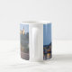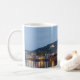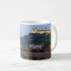 Esta taza de cerámica blanca ofrece una fotografía del tiempo de la tarde de la fortaleza de Festung Marienberg con el río principal en Würzburg, Baviera, Alemania.