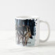 Esta taza de café de cerámica se muestra con una foto impresa de lobos en el famoso Parque Nacional Yellowstone. Personalizar este elemento con esta plantilla o compre como se muestra.