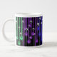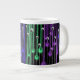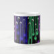 Esta taza de café tiene una imagen de un dibujo de lápiz abstracto en ella cuál pasó con ajustes en Photoshop hacerlo cuáles es. Como un artista que he pasado las porciones de tiempo que trabajaban con colores brillantes y cuanto más he hecho que cuanto más he decidido que el verde, el azul, y la púrpura son mis colores preferidos a utilizar juntos. Y tener el diseño sobre un fondo del negro azabache hace que se destaca más.