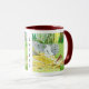 Una taza con una hermosa escena forestal que incluye una cierva y un cervatillo bebiendo de un arroyo cerca de una cascada. Obra de arte original de W.B.