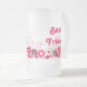 Esta taza de cerveza helada amistad hermosa dice al "mejor amigo". Estas porciones coloridas y alegres de las características del diseño de flores rosadas con las vides swirly verdes detrás de ellas y del fondo tienen rosas rosados débiles.