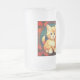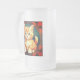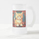 Cerveza de vidrio escarchada con un gato naranja al estilo de Alphonse Mucha! Este adorable gatito con ojos verdes está enmarcado por hojas de otoño. ¡Un regalo maravilloso para los amantes del gato y de los coleccionistas Art Nouveau!