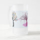 Tres árboles imaginarios: uno con las mariposas coloridas, uno con las hojas coloreadas multi brillantes y el de centro con apenas algunos Borgoña coloreó los corazones, todos en un sobre azul escarchado del fondo una taza helada grande muy bonita.