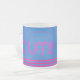 La taza de café de vidrio azul mate muestra el texto "Cute Mug" en una taza de café de vidrio escarcha.
