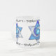 La pintura original del artista digital Leslie Sigal Javorek, que aparece en esta taza de vidrio esmerilada es una elegante interpretación del símbolo tradicional del judaísmo, una estrella de 6 puntas comúnmente llamada "Magen David" (transliteración del hebreo, conocido en inglés como "La estrella de David"). La versión de Leslie aquí muestra 3 estrellas como hechas de vidrio con plomo y manchas con bordes tipográficos de arriba y abajo alternando las palabras "paz" y "Shalom".