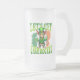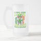Gato Sfinx "Vamos a ser avergonzados" Irlandés St Patrick's Day Frosted Glass Beer Mug. Con un gato Sphynx sosteniendo dos vasos de cerveza verde con el fondo de la bandera de Irlanda y la graciosa cita, 'Vamos a quedar chamuscados' en diseño de tipografía verde para la taza de cerveza de vidrio congelada de San Patricio.