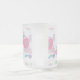 Una taza de vidrio esmerilado con un diseño japonés de grúas de papel de origami y flores de color rosa, púrpura, verde y azul, sobre un fondo de textura de papel.