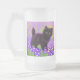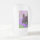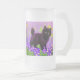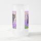¡Mug de cerveza de vidrio escarcha con un gatito negro de Gustav Klimt! Esta belleza de ojos anchos posa en un campo verde de flores moradas. Un regalo para los amantes del gato y del arte austriaco.