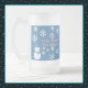 A Slice of Life and Delight presenta a Hello, Winter Wonderland, tazas de café de vidrio esmeriladas con un muñeco de nieve adornado con copos de nieve blancos, escritura rosa y fondo azul. Las tazas de muñeco de nieve también tienen un gorra azul y una bufanda.