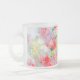 Café de vidrio escarchado con pintura floral de Claude Monet. Hermosas peonías rojas, amarillas y blancas en un jarrón azul. Un gran regalo de Monet para los amantes del impresionismo y el arte francés.