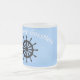 Mariner mug: Personaliza con el nombre del barco/barco curvado sobre la parte superior de un timón negro. Texto para el rango de la tripulación en la parte inferior de cada lado. Color de fondo personalizar a su gusto.