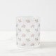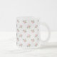 Una taza de vidrio escarchada muy bonito, con un patrón nostálgico de pequeños Dogroses rosados, arregló el estilo Polka Dot sobre un fondo blanco texturado. Este patrón, que forma parte de la colección "Rosy Posy" de Posy y Pintado, se adaptará a todas las tazas.