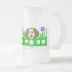 Pueden admirar mi adorable dibujo de un cachorro esponjoso jugando con césped verde lleno de flores, yo llamo a este dibujo, "Pup N Play". Esta gran taza de vidrio esmerilado es el regalo perfecto para cualquier ocasión.