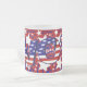 Esta imagen de texto explica "votar" en franjas rojas y blancas con estrellas azules y blancas. El fondo es rojo, blanco y azul, como nuestra bandera estadounidense. Estrellas y rayas. Estas tazas están disponibles en diversos estilos, colores y tamaños.
